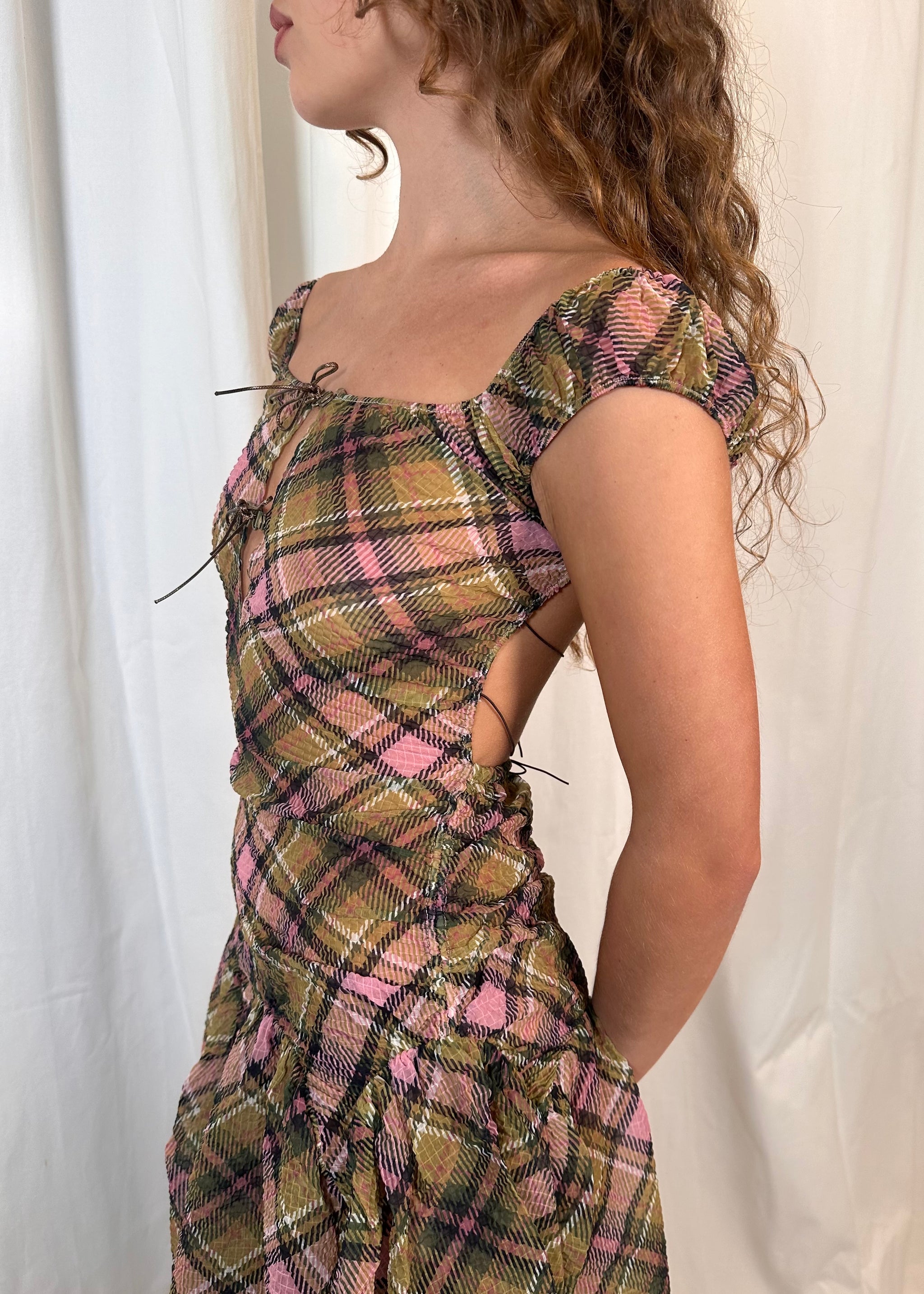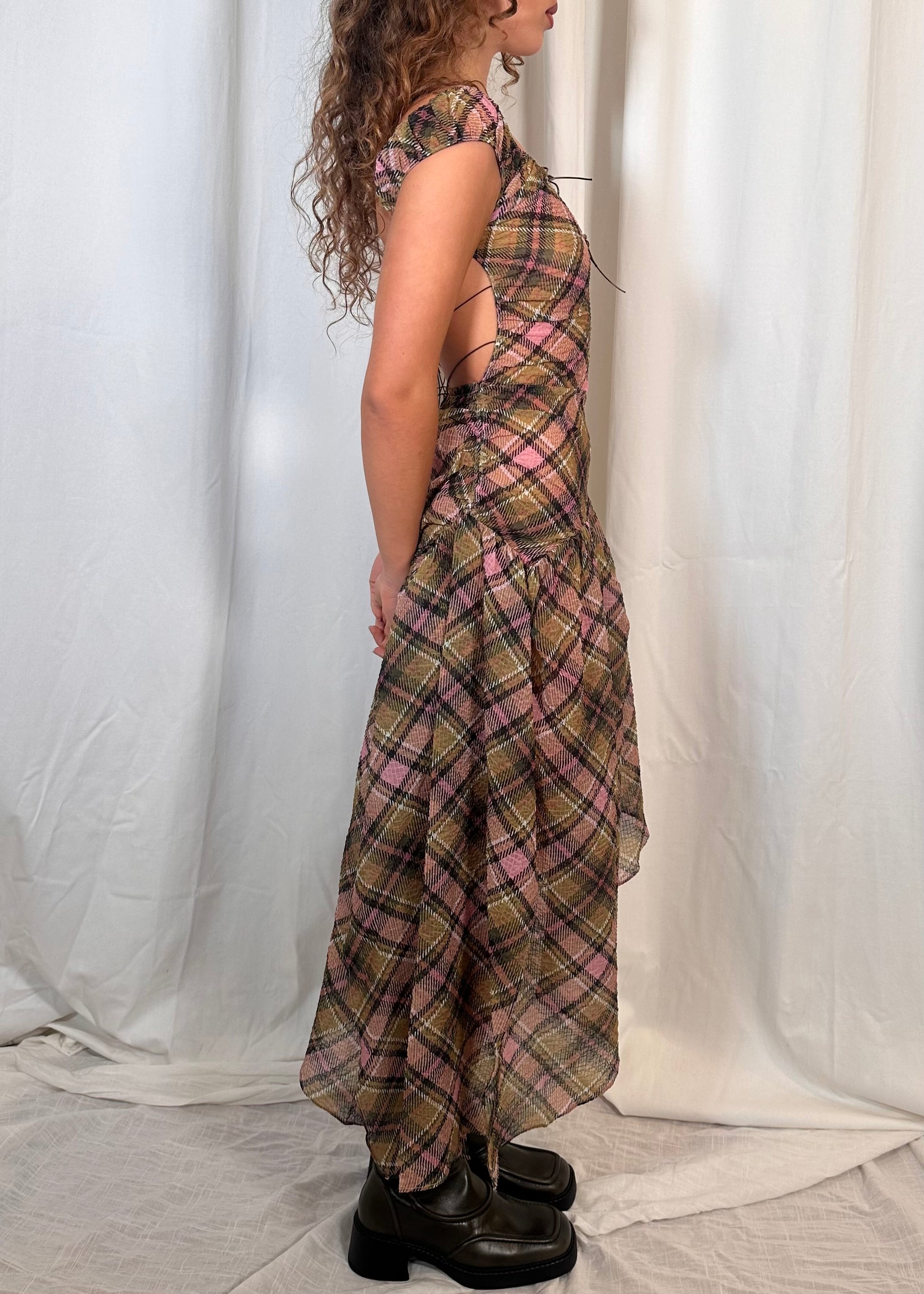 Plaid Puff Chiffon Asymmetrical Dress Smooky