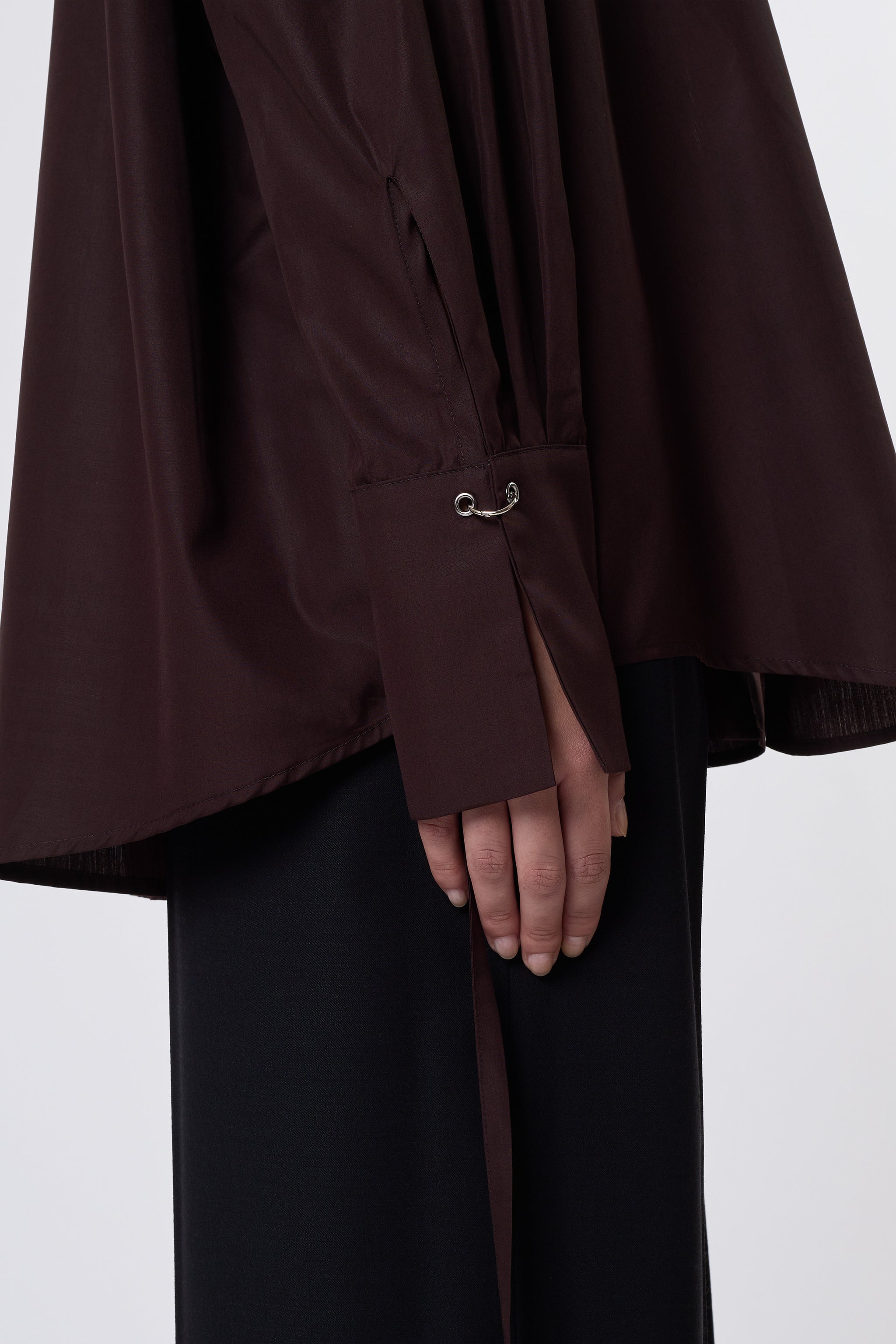 Straight cut, light and comfortable shirt with piercing cuffs. One size